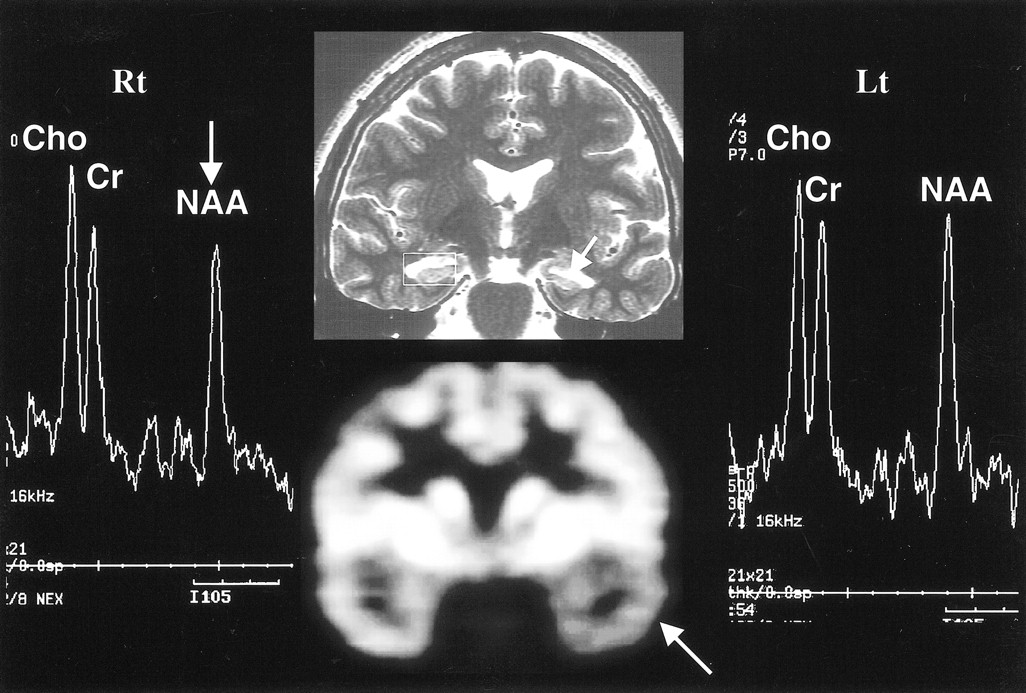 SPECT and PET have been studied extensively in the localization of epileptogenic foci, but MRS is still in the early stage of clinical application in patients with epilepsy. To our knowledge, studies comparing MRS with MR imaging and PET are scarce (13), presumably because of the limited availability of the techniques and the continuing advances in technology.
