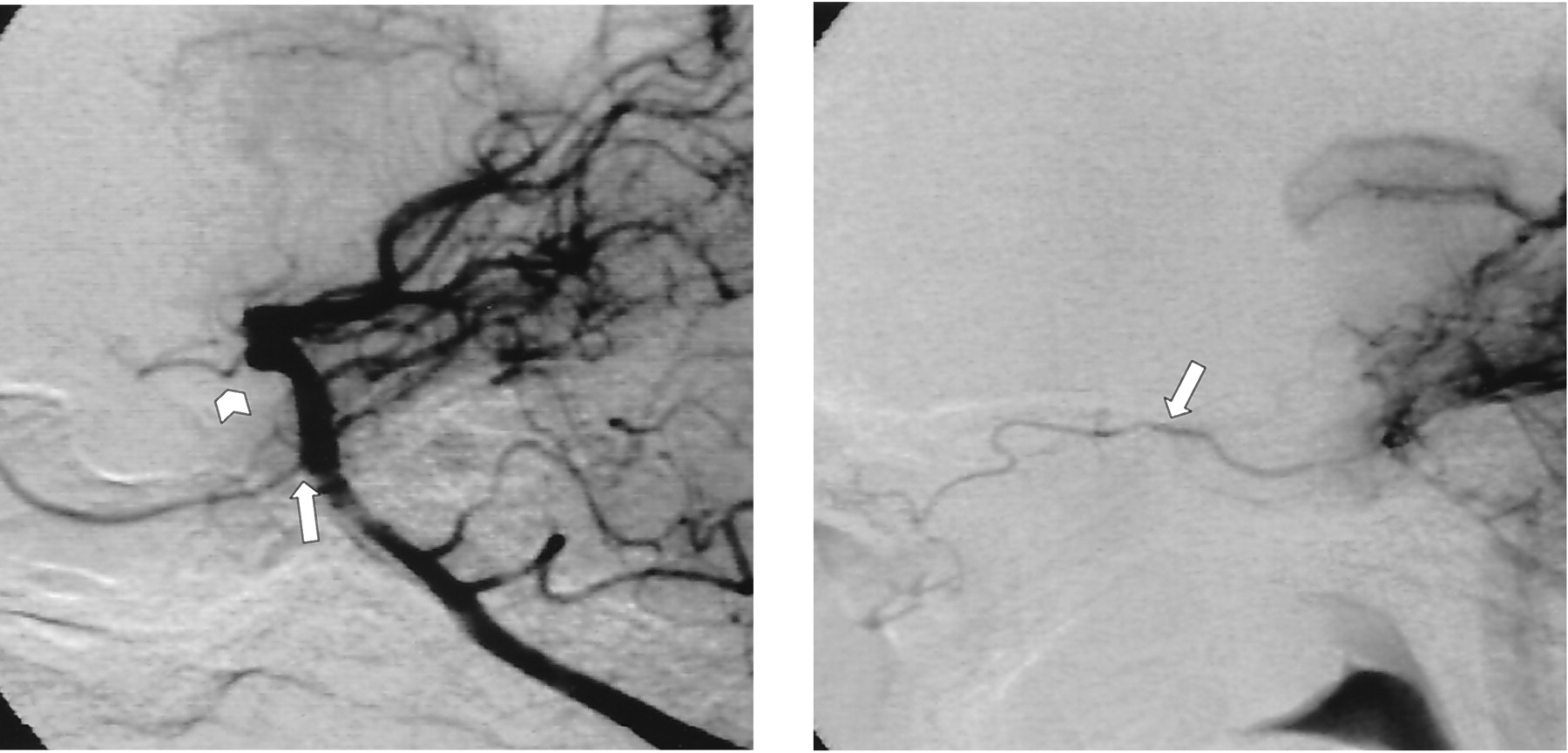Atypical origin of the OA is a rare entity. In a study of 109 cadavers, the point of origin was on the ICA in all specimens, 59% being over or on the cavernous roof (8). It typically originates beneath the lateral aspect of the overlying optic nerve and travels through the optic canal (1).
