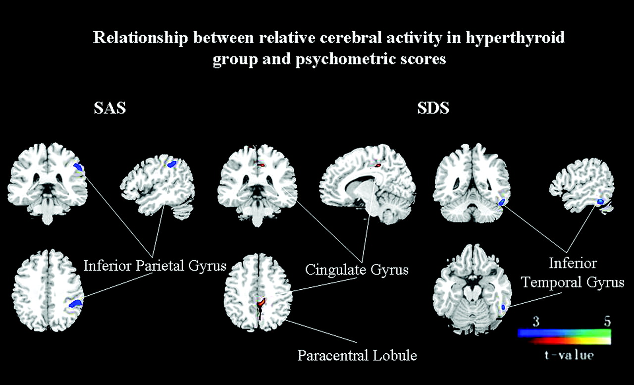 The relationship of cerebral activity with SAS and SDS in patients with hyperthyroidisma