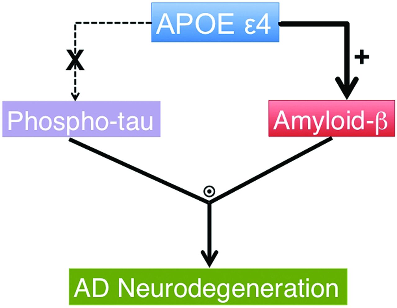 CONCLUSIONS: On the basis of our findings and building on prior experimental evidence, we propose a model of the pathogenic cascade underlying preclinical AD in which APOE ε4 primarily influences the pathology of Alzheimer disease via Aβ-related mechanisms, and in turn, Aβ-associated neurodegeneration occurs only in the presence of p-τ.