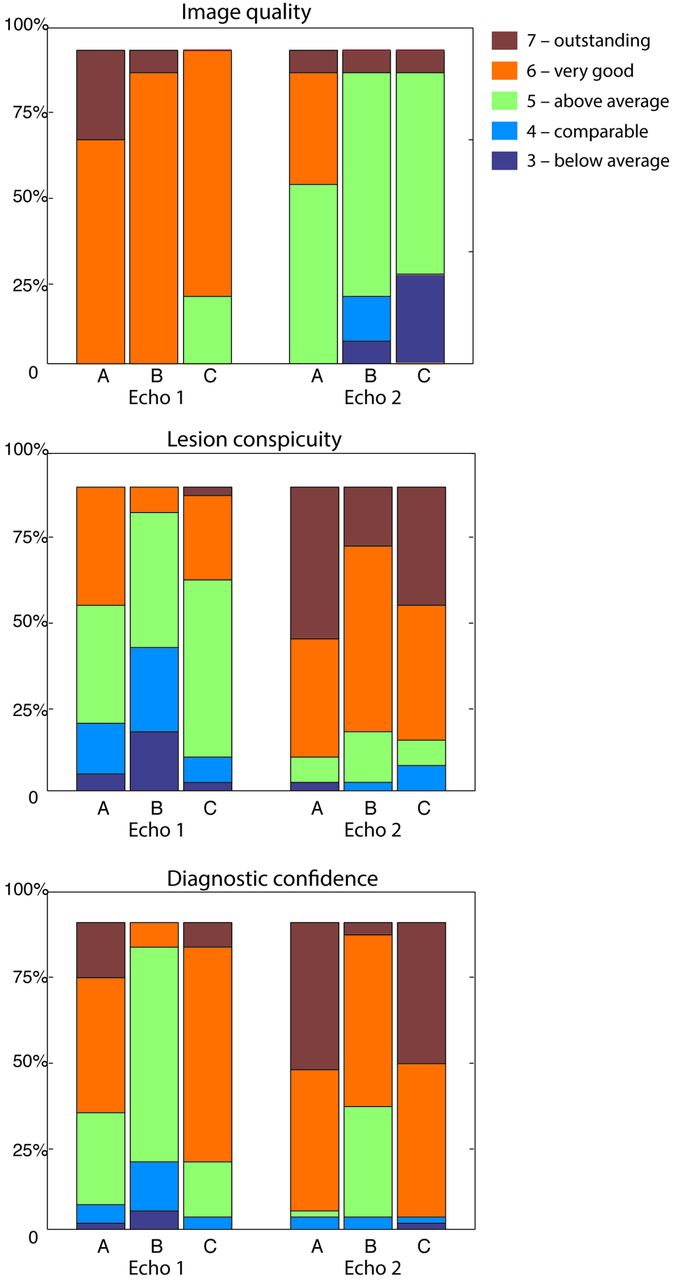 2) Diagnostic confidence for each echo DWI (echo 1 and 2) relative to the reference image