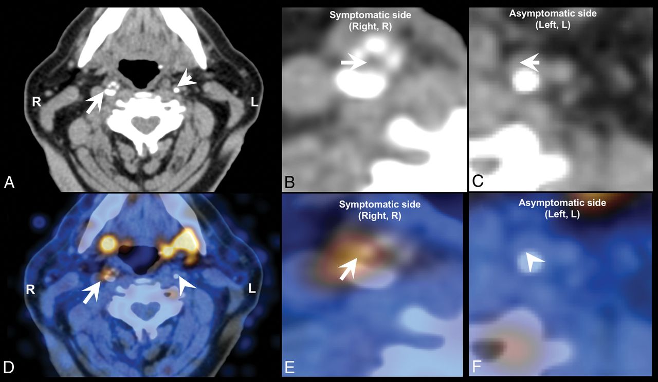 Several types of inflammatory cells are detected in the carotid artery vulnerable plaque, and some studies have found that the presence of macrophages is significantly associated with the risk of plaque rupture87⇓–89; therefore, the identification of macrophages has become the target of imaging studies devoted to the detection of plaque inflammation.90⇓⇓⇓–94