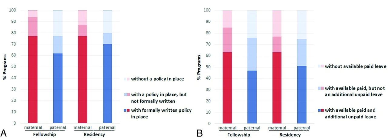 CONCLUSIONS: Most neuroradiology fellowship programs have explicit maternal and paternal leave policies that grant paid leave to trainees. Some also offer unpaid leave, mostly through Family and Medical Leave Act guidelines. A uniform policy derived from the Accreditation Council for Graduate Medical Education and/or American Board of Radiology would be useful and overwhelmingly accepted.